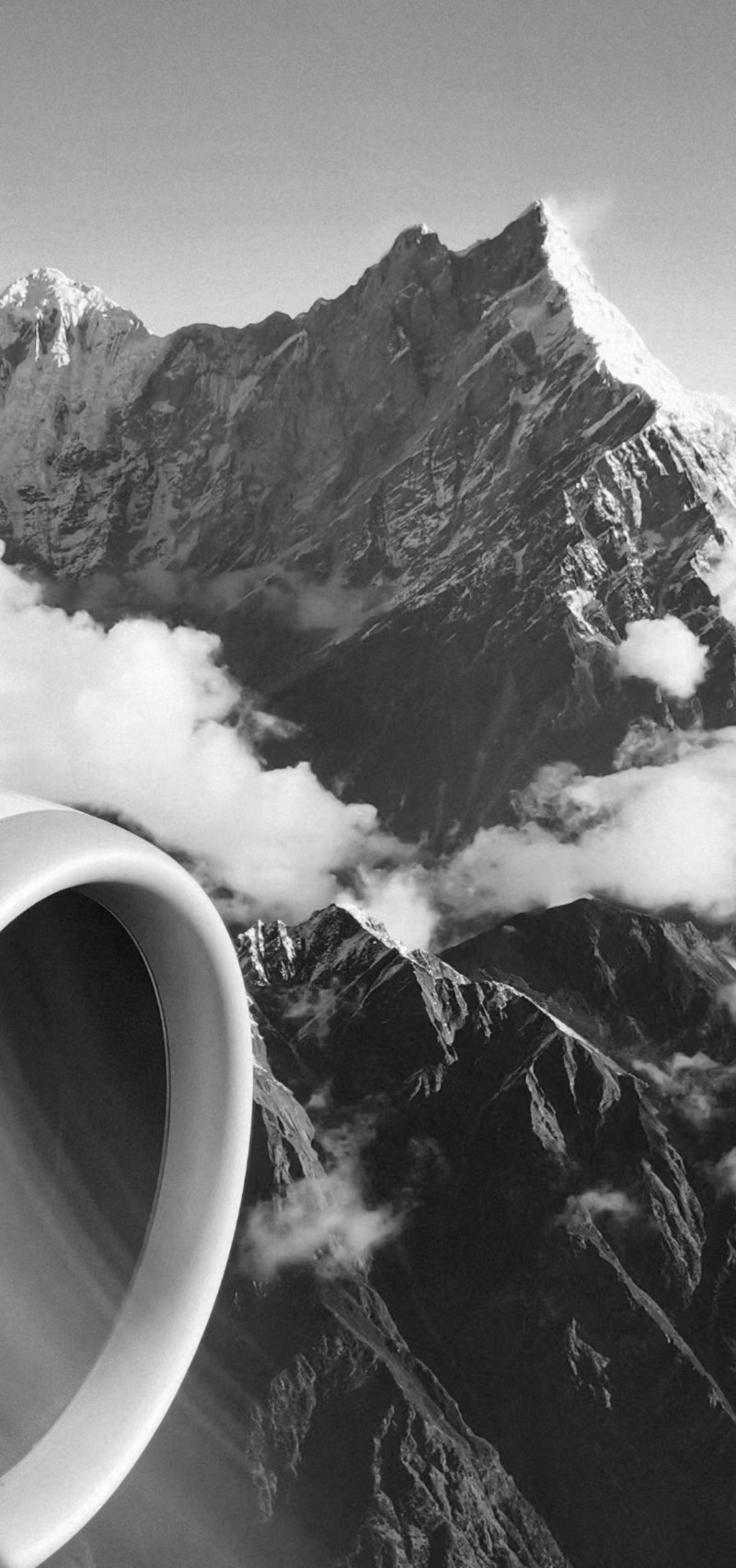 云外:極言高度之高,飛機(jī)已飛行至云層之上,營造出一種超脫塵世、翱翔天際的宏大意境。