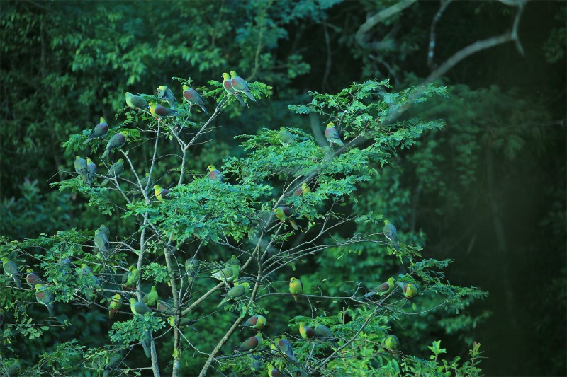 走進“美女池”畔,成群嬉鬧的楔尾綠鳩出現(xiàn)在眼前。只見它們時而停歇在池邊茂密的樹梢,沐浴著溫潤的水汽;時而在林間輕盈穿梭,清脆的鳴叫聲與潺潺的溫泉流水聲交織成曲。其獨特的外形——通體翠綠、尾羽呈明顯的楔形,在氤氳霧氣與綠樹掩映下格外醒目,吸引了眾多游客和攝影愛好者駐足觀賞、記錄下這難得的畫面。